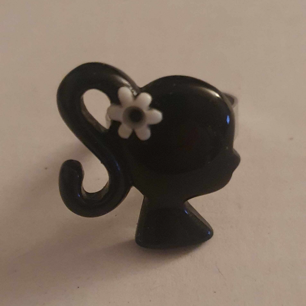 Bague en acier inoxydable argenté. Silhouette de Barbie en acrylique. 2 modèles disponibles. Ajustable.