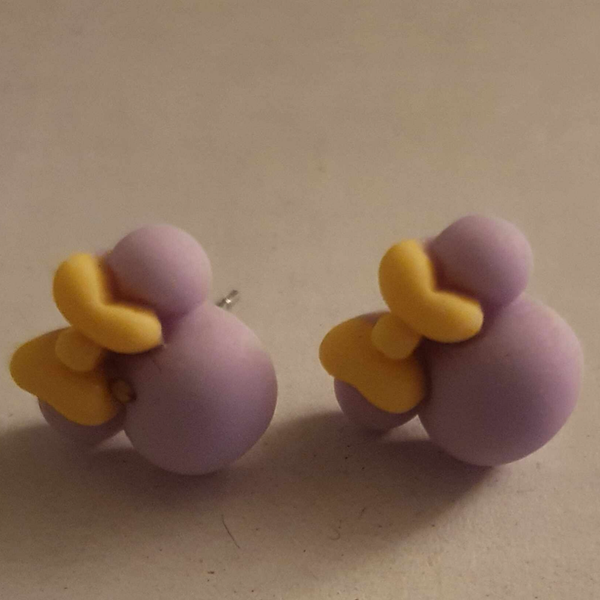 Boucles d'oreilles (puces) en acier inoxydable argenté. Tête de Minnie en résine.