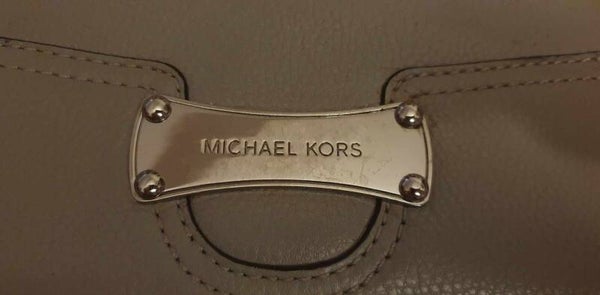 Très joli portefeuille gris Michael Kors. Plusieurs compartiments carte. 1 emplacement billets + 1 porte monnaie au centre. Très pratique. Marques d'usure (voir photos) mais en très bon état.