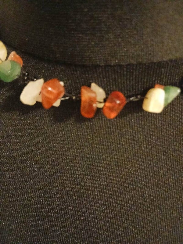 Description: collier fait d'éclats de pierre de différentes couleurs