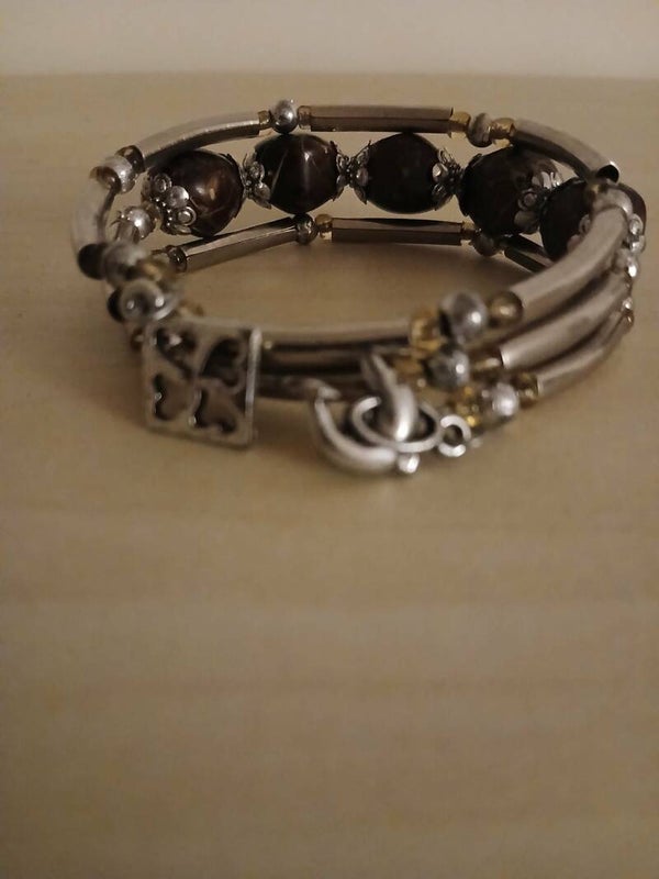 Bracelet - Multi rangs métal et pierres brunes