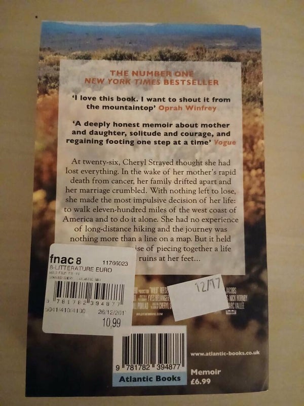 L'éditeur : Cette version spécifique avec ce bandeau blanc en haut ("Now a major motion picture") et la police d'écriture manuscrite pour le mot "Wild" correspond au catalogue de la maison d'édition britannique Atlantic Books.