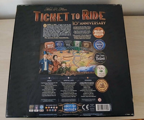 Vends l'édition prestigieuse et limitée du 10ème anniversaire du célèbre jeu "Les Aventuriers du Rail" (Ticket to Ride). Cette version "Oversized" n'est plus commercialisée et constitue une véritable pièce de collection pour les amateurs de la gamme.