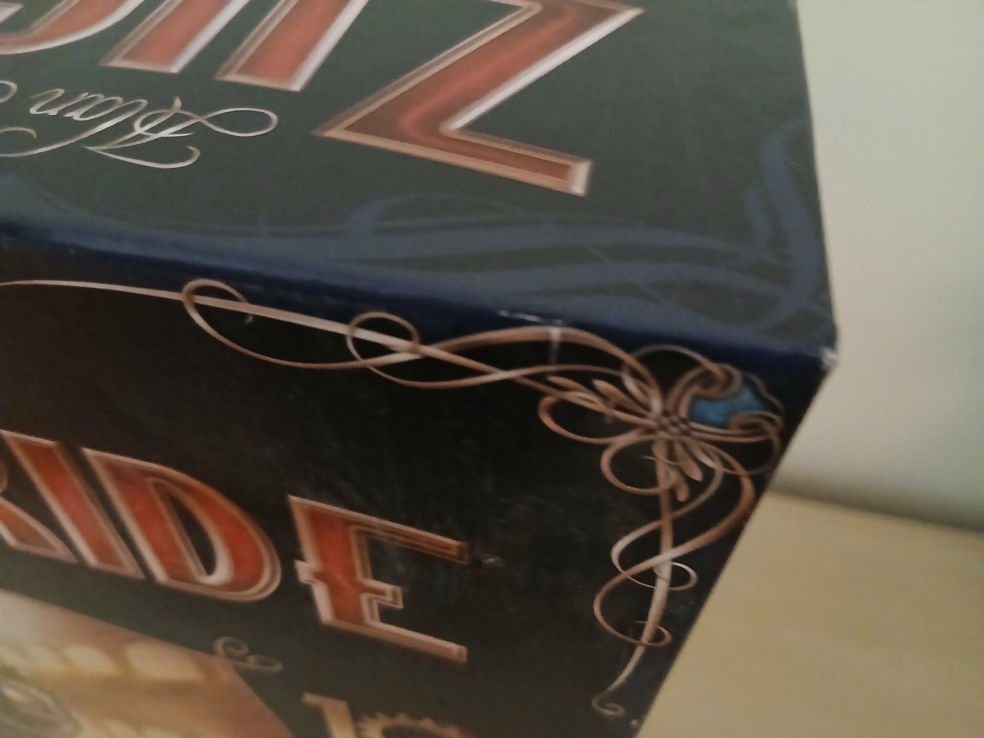- Extérieur : La boîte présente des traces d'usure et de frottement sur les arêtes et les coins (voir photos détaillées), ce qui est fréquent sur ce format volumineux.